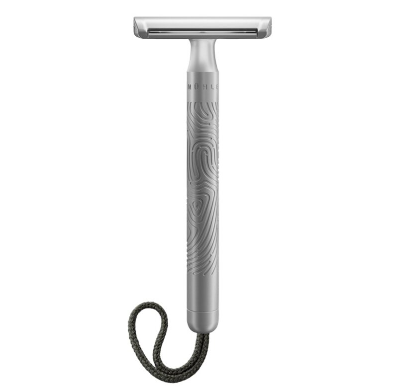 La nuova struttura del manico offre una presa extra . Il suo design raffinato ricorda le impronte digitali. Allo stesso tempo, il manico è leggermente più lungo degli altri rasoi MÜHLE. Questo rende la rasatura delle gambe e di altre parti del corpo un'esperienza felice.