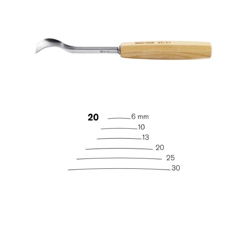 Sgorbia Per intagliare superfici convesse difficili da raggiungere e per rifiniture accurate.